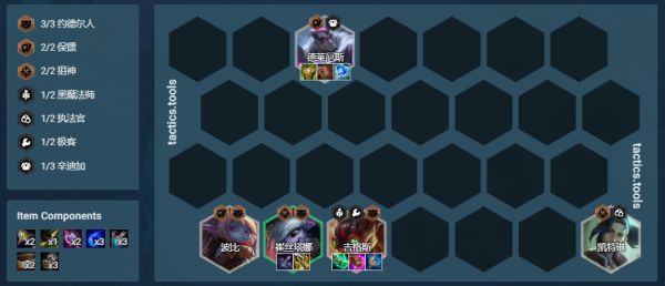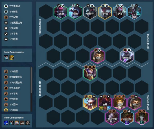 前期思路:腰带开,先找塞恩的装备,因为我们是高费卡体系阵容,前期要打连胜前排就得肉的住,可以直接做一手狂徒给我们的前排。我们前期过渡有两种——3约德尔2保镖(经济好)3发明2保镖2极客(连胜强),完美契合我们的后期阵容,后期来人直接换就行,小炮带烬的装备打工强度也很高,2星诺手有2保镖羁绊单顶第一排带肉装(比如狂徒),往往能1个人拖很久