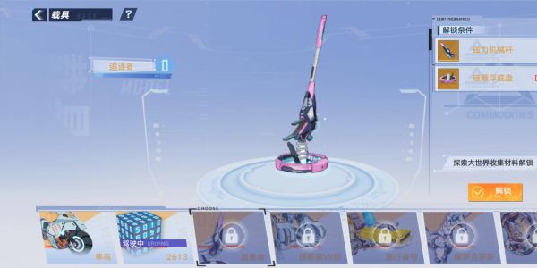 集齐追逐着的两个零件,在主界面点击右上角,再点击载具,选中追逐着解锁,即可获得载具追逐着!