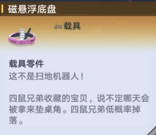 击败四鼠兄弟,低概率掉落:磁悬浮底盘(没掉可以等怪复活,然后反复刷),下面是四鼠兄弟们的位置,击败这些精英怪可获得成就。