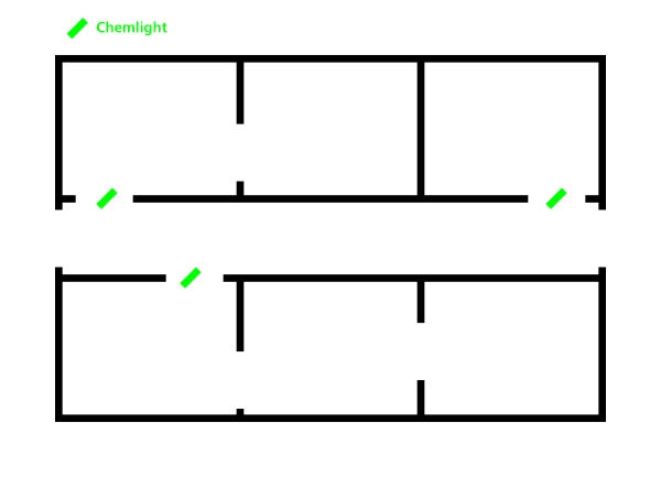 根据建筑内的情况,偶尔需要队员站在同一侧,例如下图。进入房间后,左边还有一个小房间,在不知道里面有什么的情况下最好先将枪口对准那边防止出现意外情况。然后两个人站在房间的同一个角落里即可。
