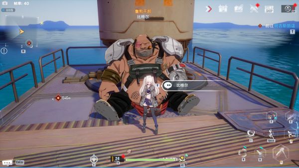 看守宝箱的要吃滋滋烤肉才能让我们开宝箱,宝箱里面有旅行者号-引擎(宝箱位置在海上基地最上方)
